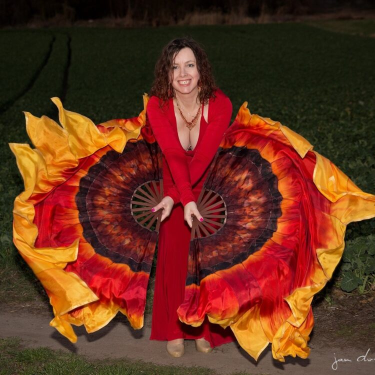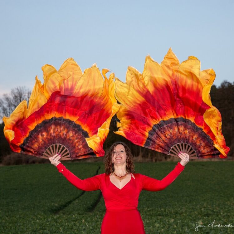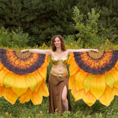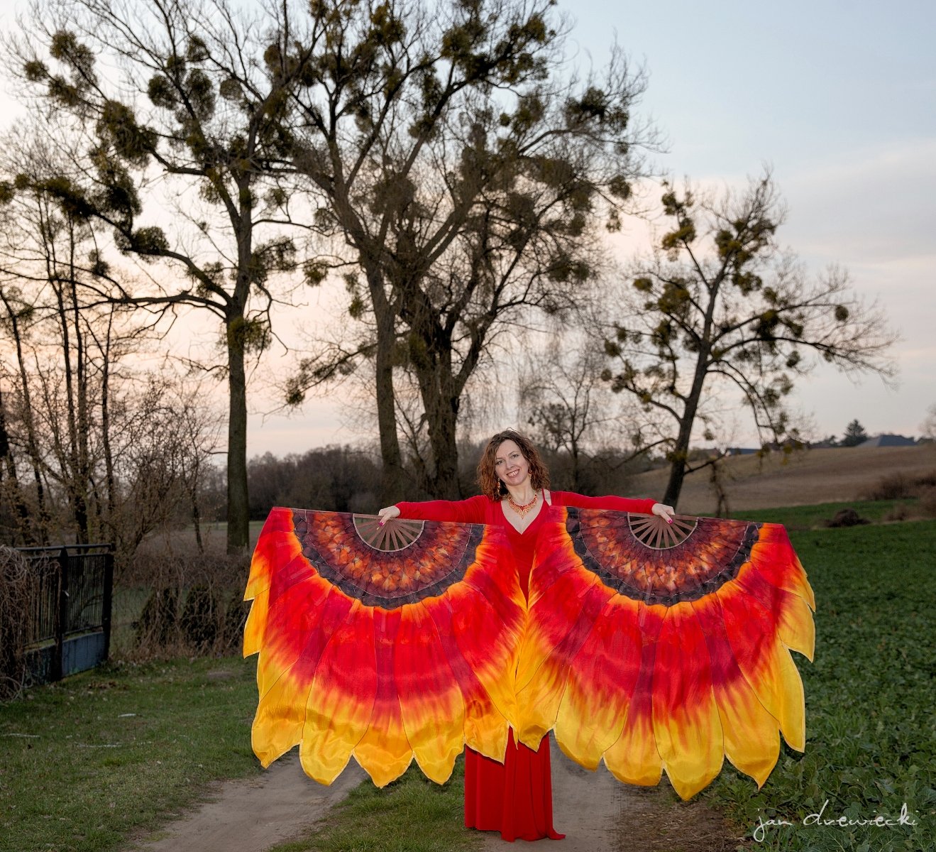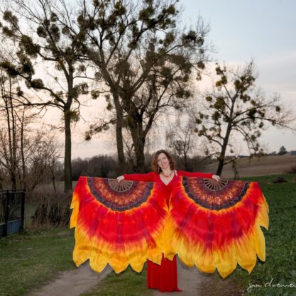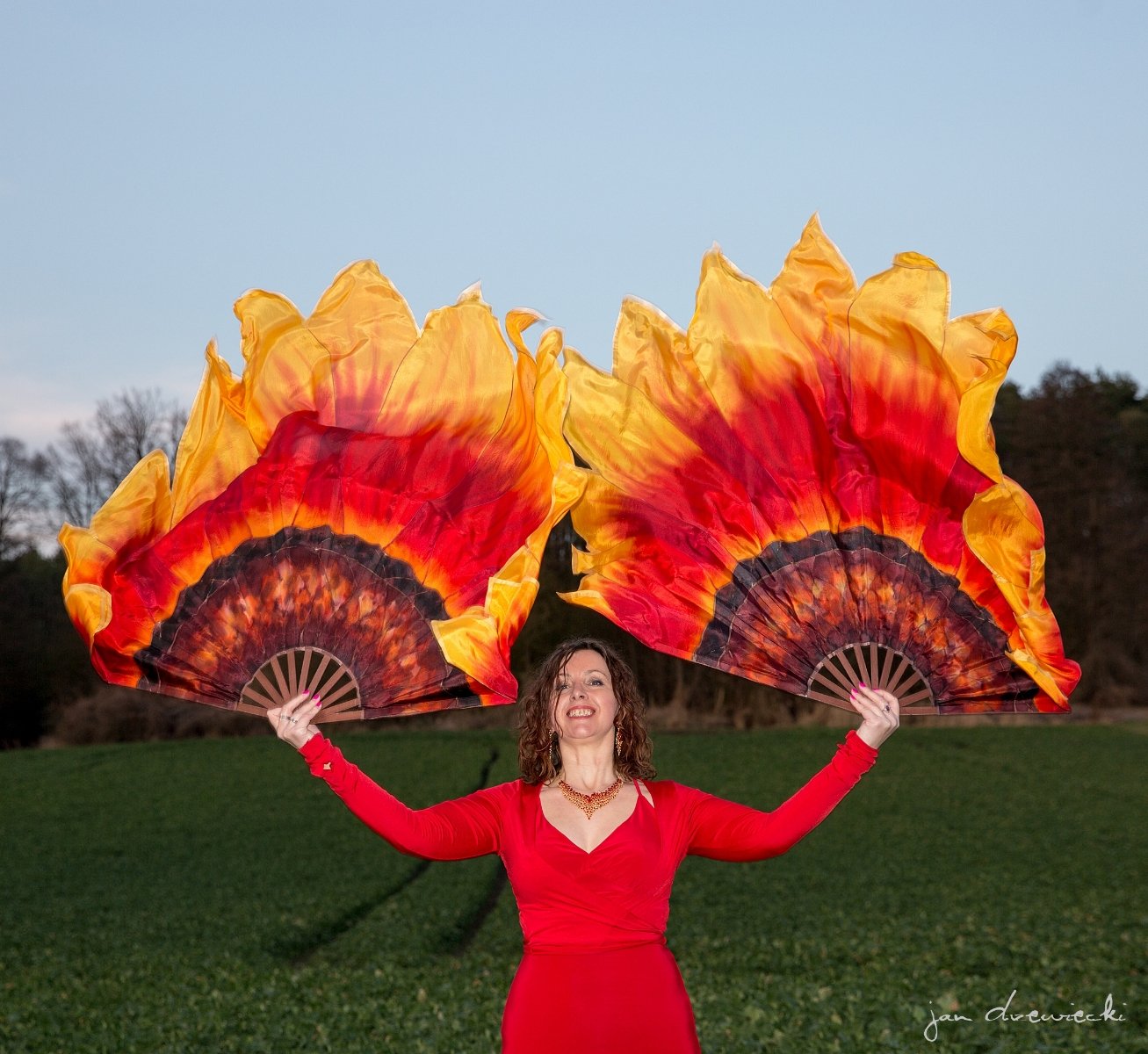 On photos are fan veils 55″ x 47″/140 cm x 120 cm.