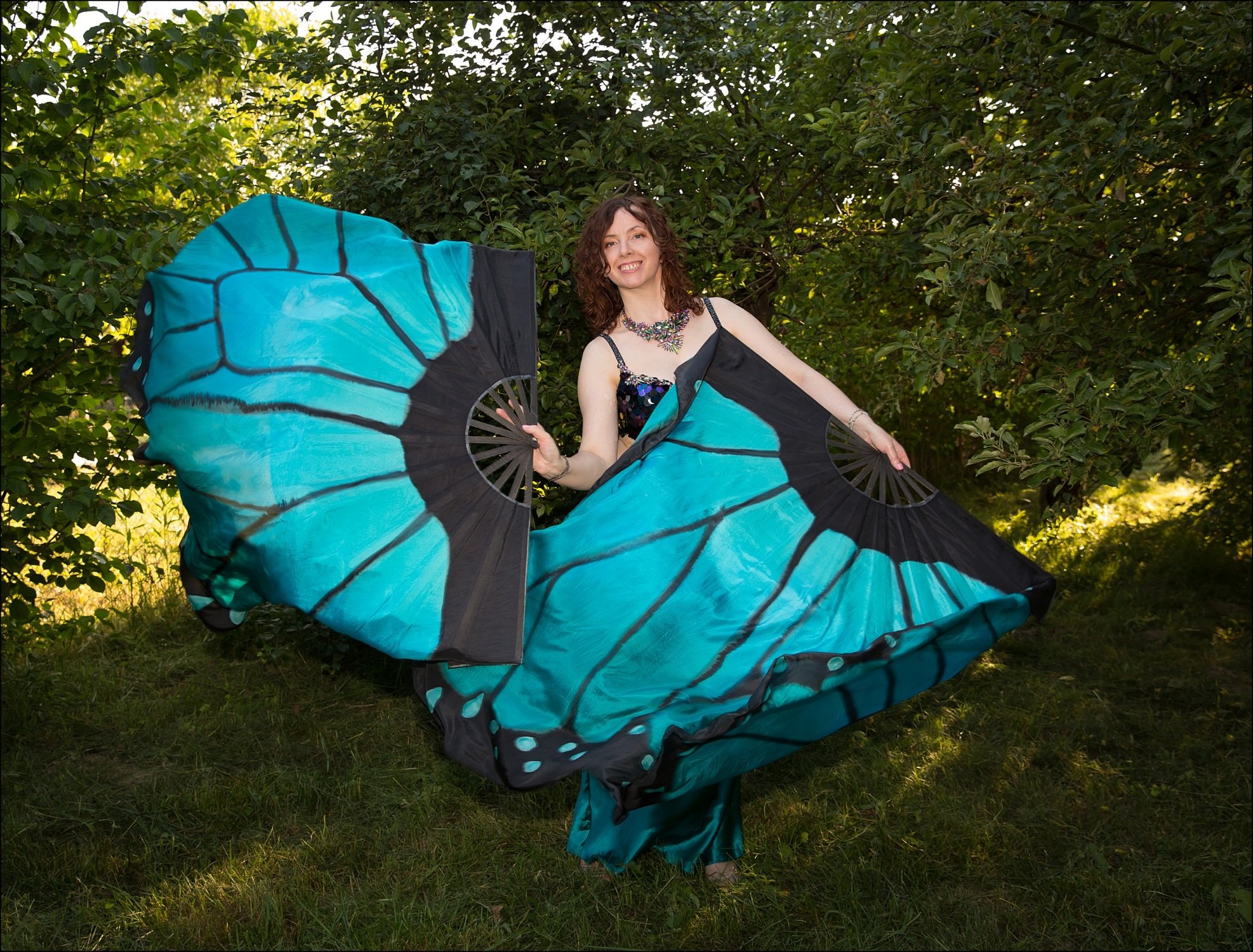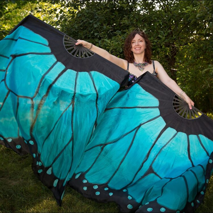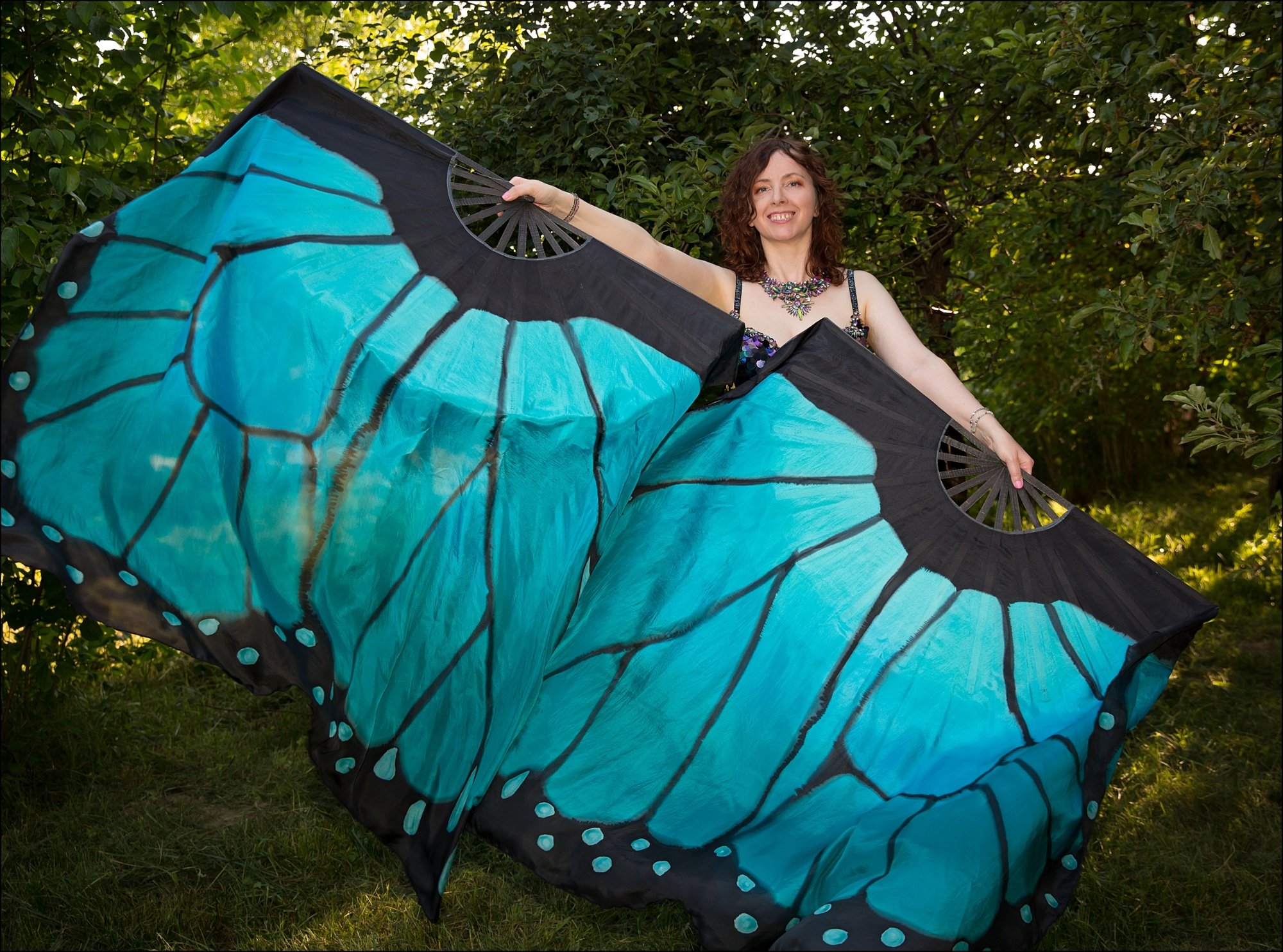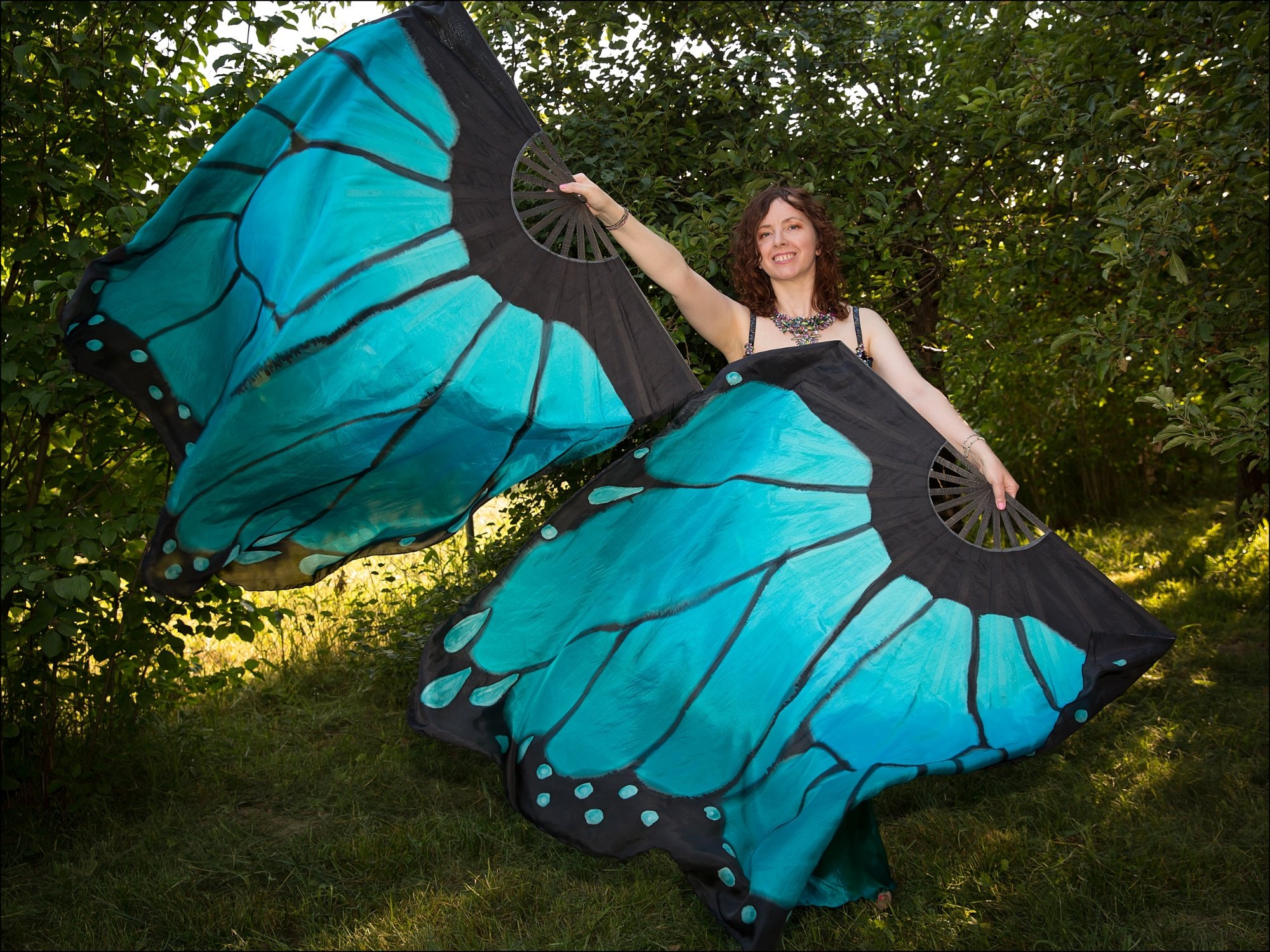 Blue – turquoise butterfly fan veils in xl size.