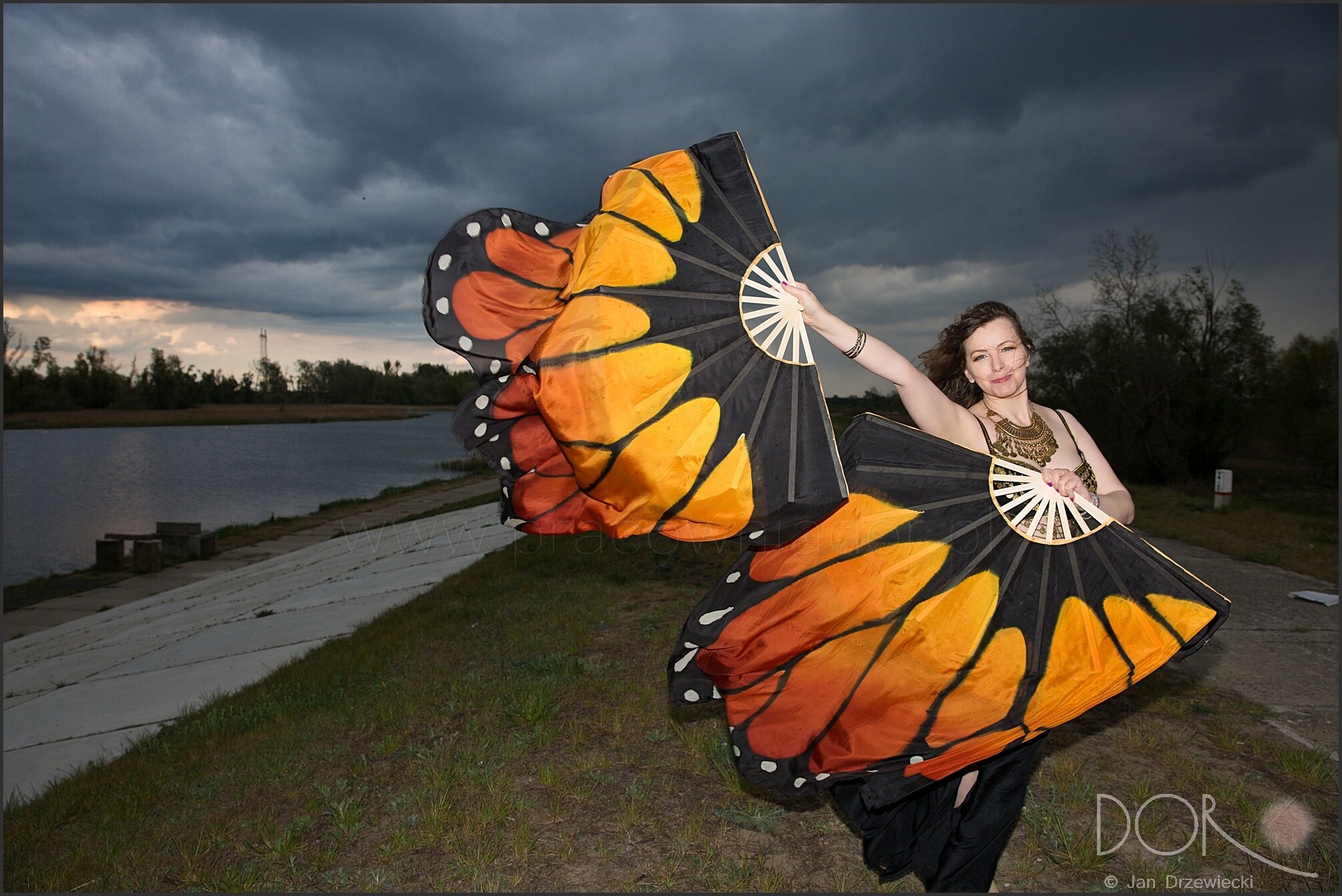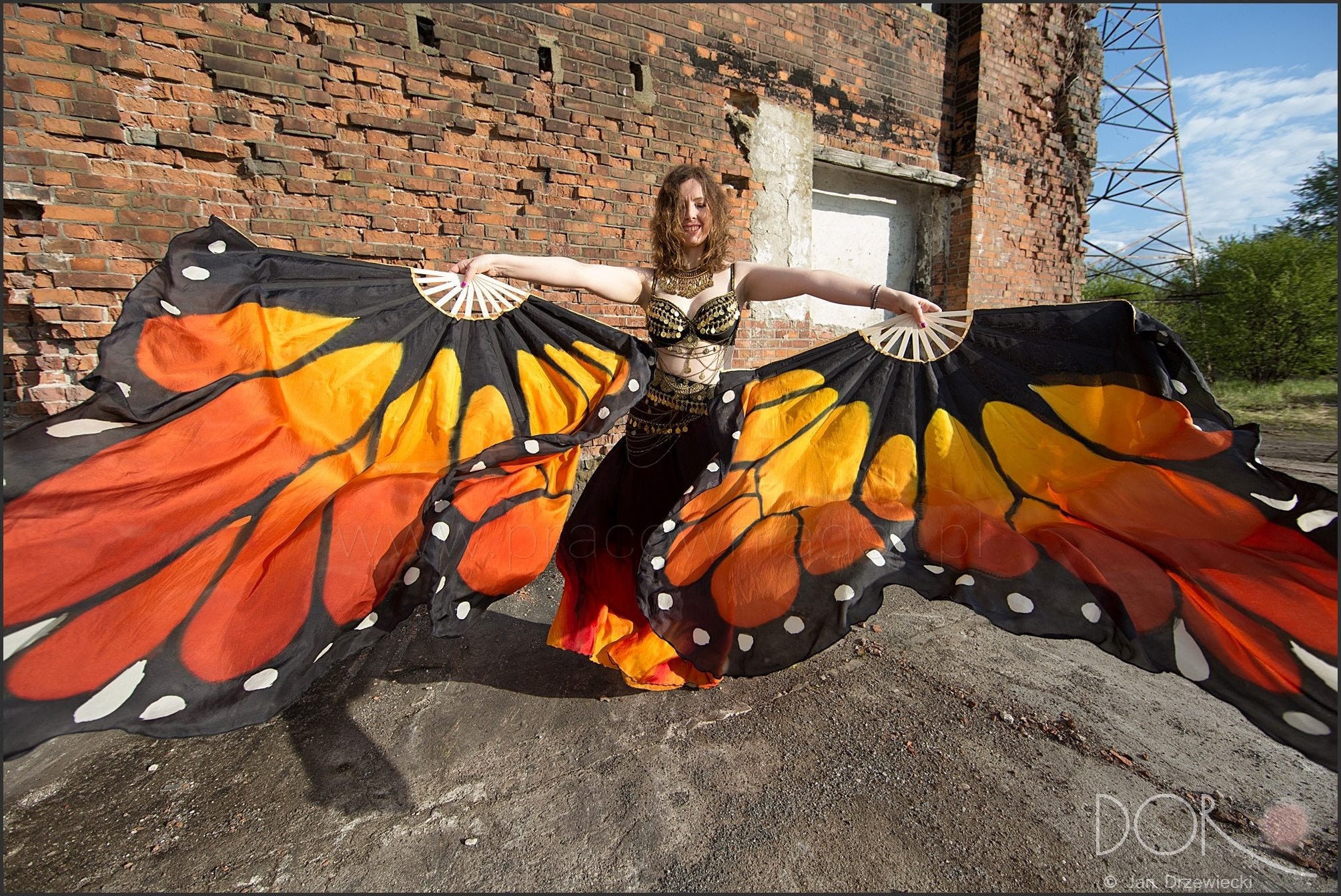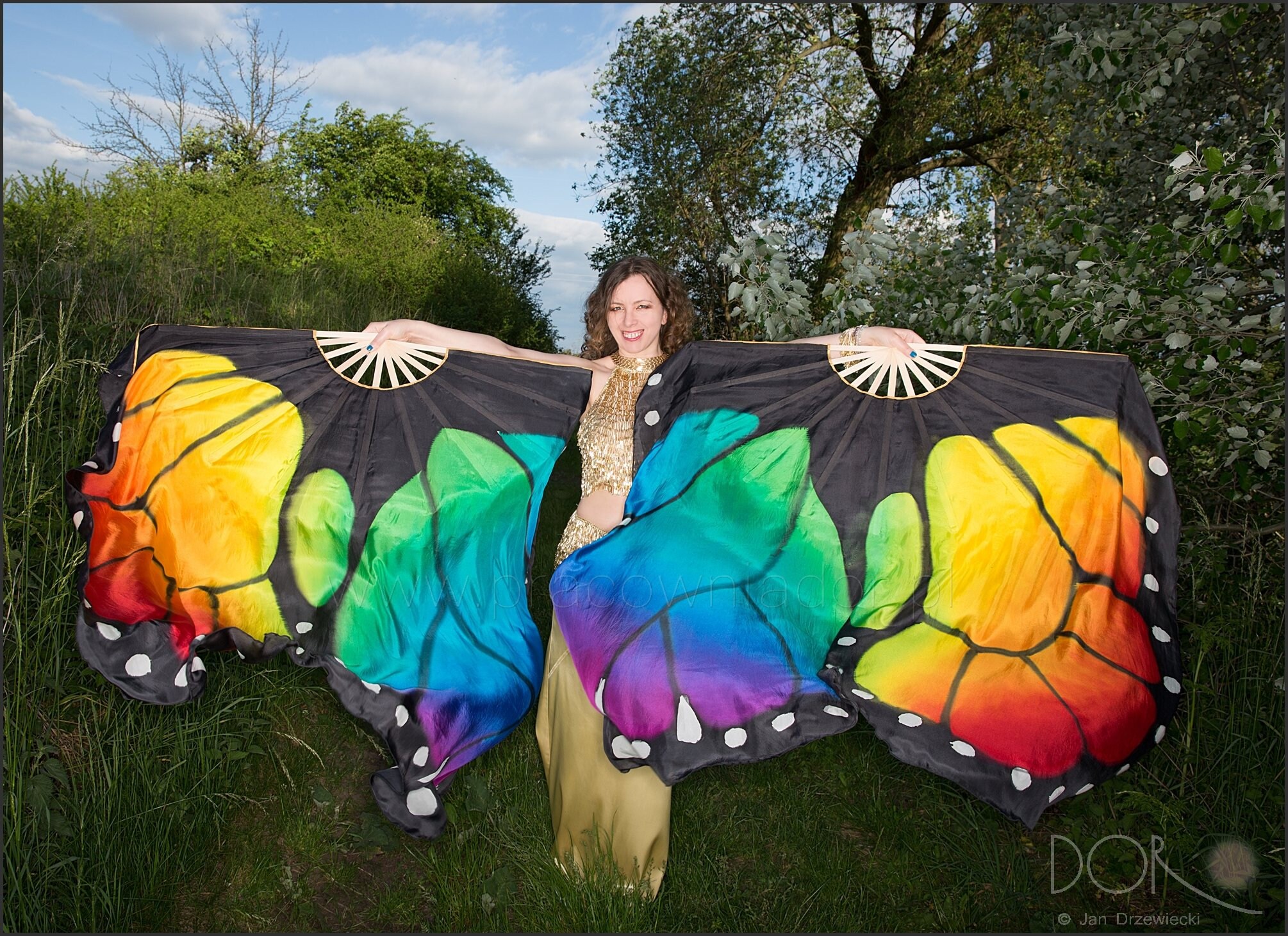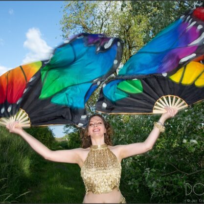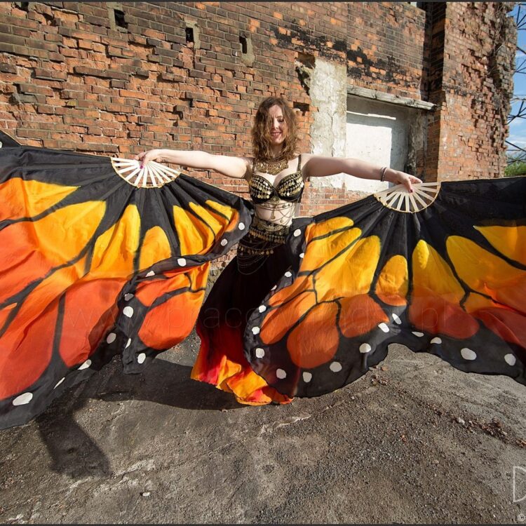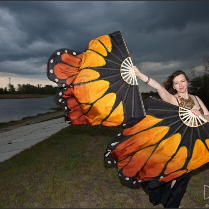 Hand painted monarch butterfly fan veils in xl size.